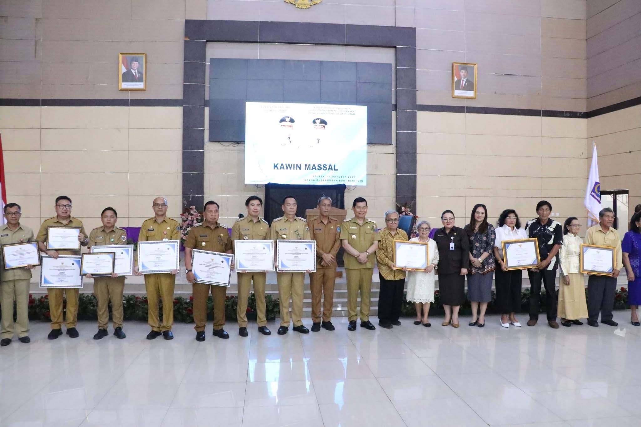 TopikSulut.com – Bupati Minahasa Robby Dondokambey, S.Si, MAP Menghadiri Pencatatan Perkawinan Massal yang dilaksanakan oleh Pemerintah Provinsi Sulawesi Utara, Selasa (14/10/2025).